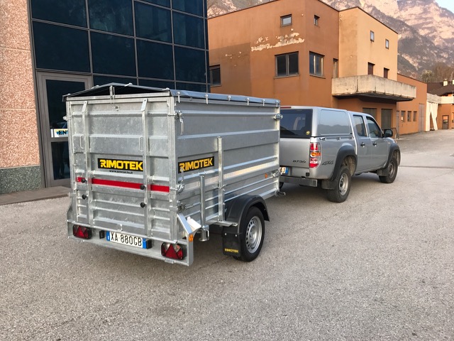 Fornitura di carrelli per con installazione gancio traino per trasportare materiale vario (esempio: legna, inerti, cassette, scatole ecc.) tutti dotati di almeno una sponda apribile e robusto telaio zincato a caldo.